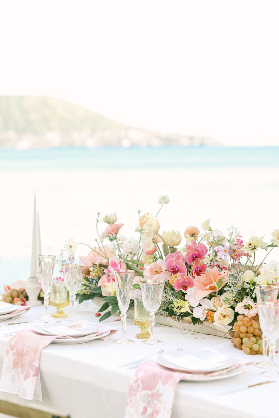 For this shoot, Hemingway combined delicate European blooms with accents of tropical orchids, flowers from her garden and wild blooms foraged from O‘ahu’s hillsides. We hope that you enjoy this soft take on tropical European elegance as much as we do.